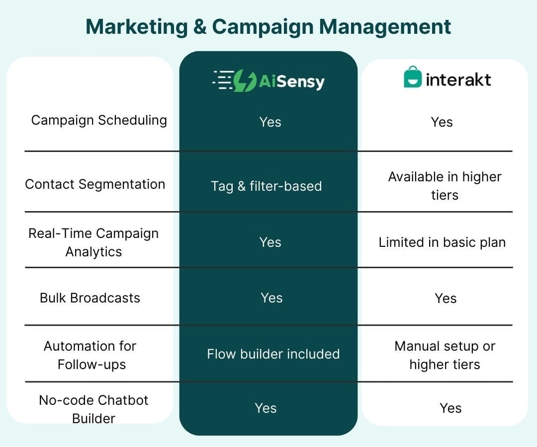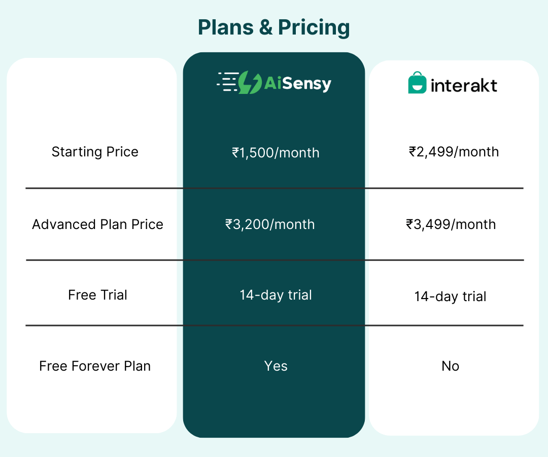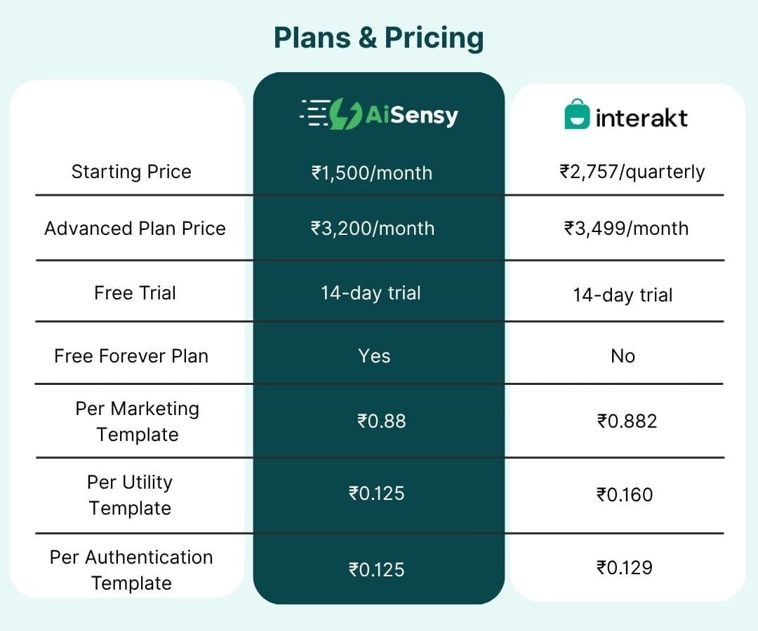 Compare as duas plataformas lado a lado com e analise a diferença entre AiSensy e Interakt