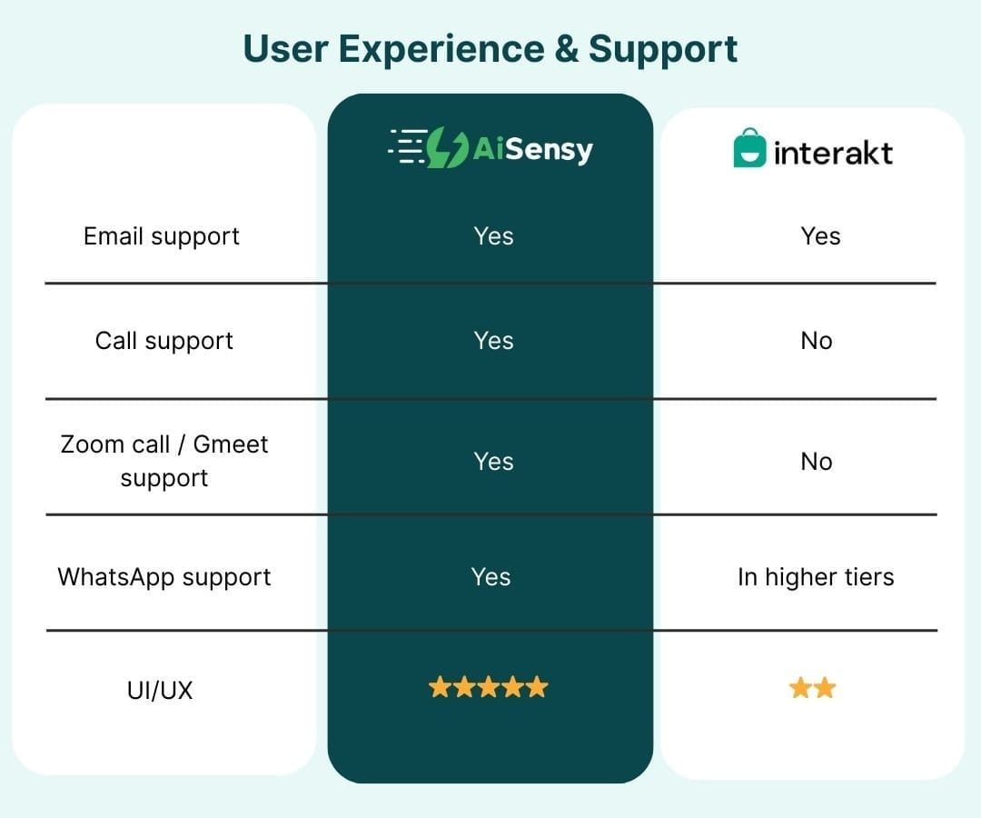 O suporte ao cliente da AiSensy é realmente melhor que o da Interakt?